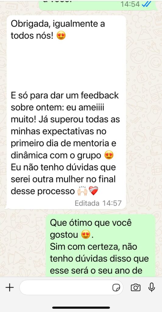 Muitas participantes começam a perceber mudanças já nas primeiras semanas. As transformações mais profundas acontecem ao longo do processo, mas o mais importante é o comprometimento com as atividades propostas. Pequenas vitórias ao longo do caminho constroem mudanças duradouras.